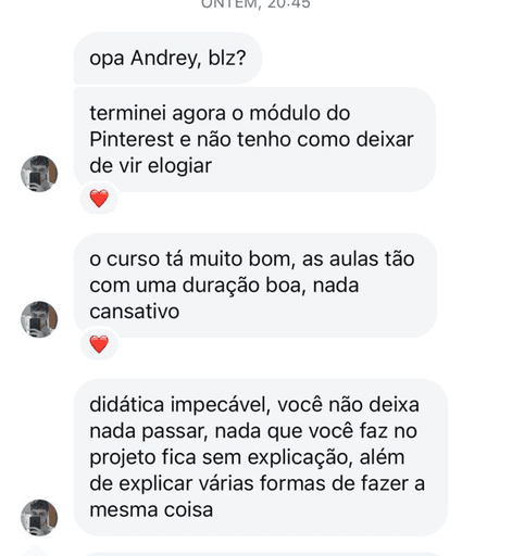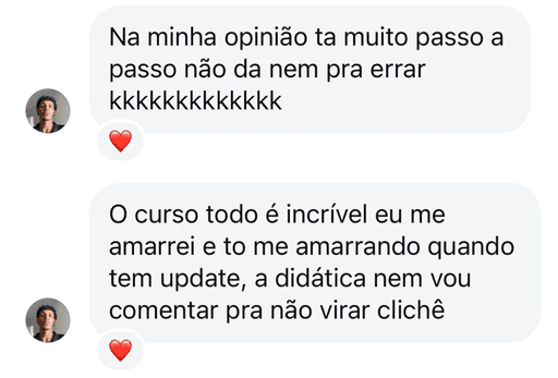 Assim que virar meu aluno (a) e se encantar com o curso, é só me enviar seu feedback no Instagram ;)